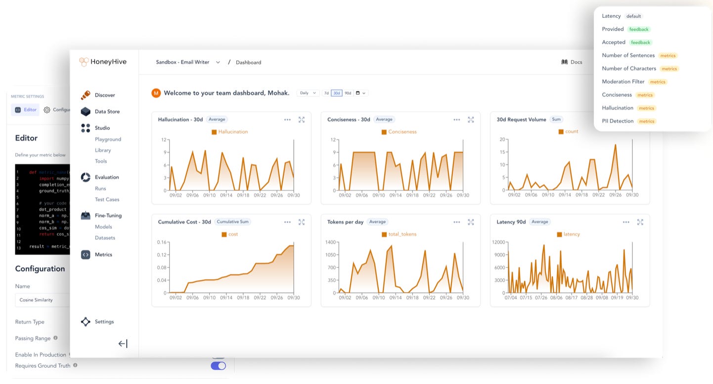 Need for new collaboration platforms for LLM eval, testing & debugging. All that stuff requires the collaboration of several teams. And the specific nature, interactive dynamics of LLMs output evaluations adds more complexity. HoneyHive is a collaboration platform to test and evaluate, monitor and debug your LLM apps, from prototype to production. It enables you to continuously improve LLM apps in production with human feedback, quantitative rigour and safety best-practices.