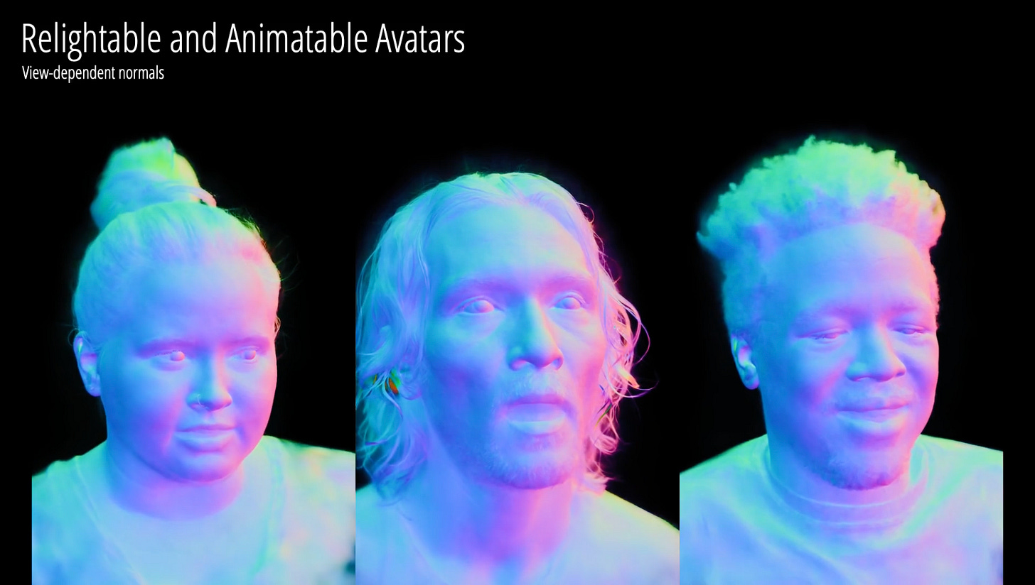 Generating high quality, animated human avatars. Meta AI researchers just introduced Relightable Gaussian Codec Avatars, a method to build high-fidelity relightable head avatars that can be animated to generate novel expressions. The geometry model based on 3D Gaussians can capture 3D-consistent sub-millimeter face details of the avatar. The model can be efficiently relit in real-time under both point light and continuous illumination. Checkout the paper and watch the amazing demos: Relightable Gaussian Codec Avatars.